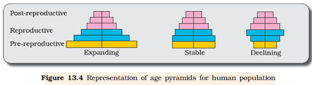 Population: a group of individual living in a well defined geographical area, share or compete for similar resources, potentially interbreed. Birth rate and death rate refers to per capita births and deaths respectively. Another attribute is sex ratio. The ratio between male female in a population. If the age distribution is plotted for a population the resulting structure is called age pyramid. The shape of the pyramids reflects the growth status of the population like growing, stable or declining. The population size is more technically called as population density.